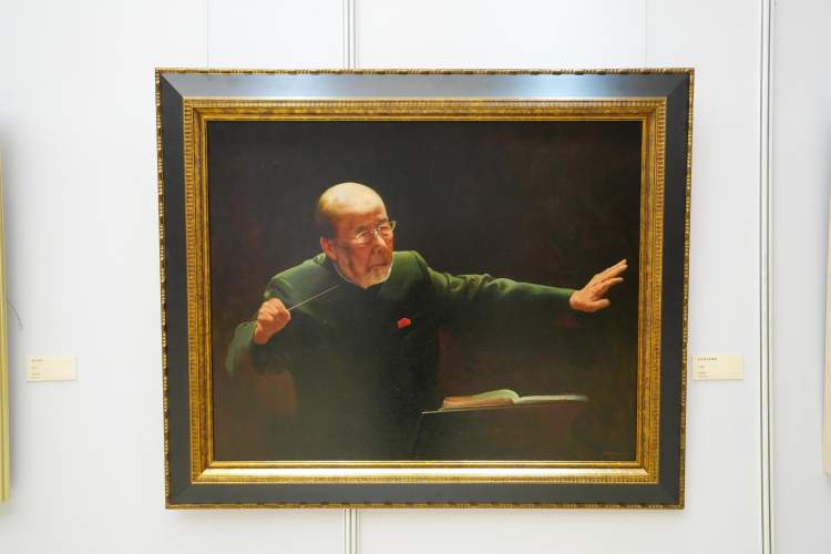 据主办方介绍,此次展览大部分作品都是新创作的,内容涵盖上海的建筑、人文、社会,展示这座国际大都市的新产业、新面貌、新气象。《百岁音乐家曹鹏》是油画家王剑锋今年6月刚刚完成的,画风细腻,非常传神。著名音乐家曹鹏今年100岁,他是上世纪50年代的留苏生,毕业于莫斯科柴可夫斯基美术学院,他也是第一个把小提琴协奏曲《梁祝》带到国外的音乐家。而王剑锋毕业于列宾美术学院。两位留苏(俄)艺术家在这幅人物画中进行了无声的对话,也体现了留学报国精神的传承。