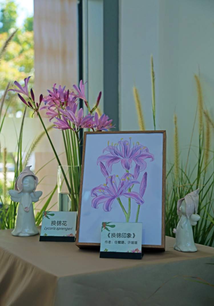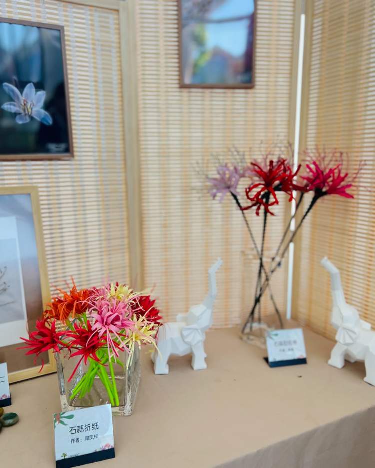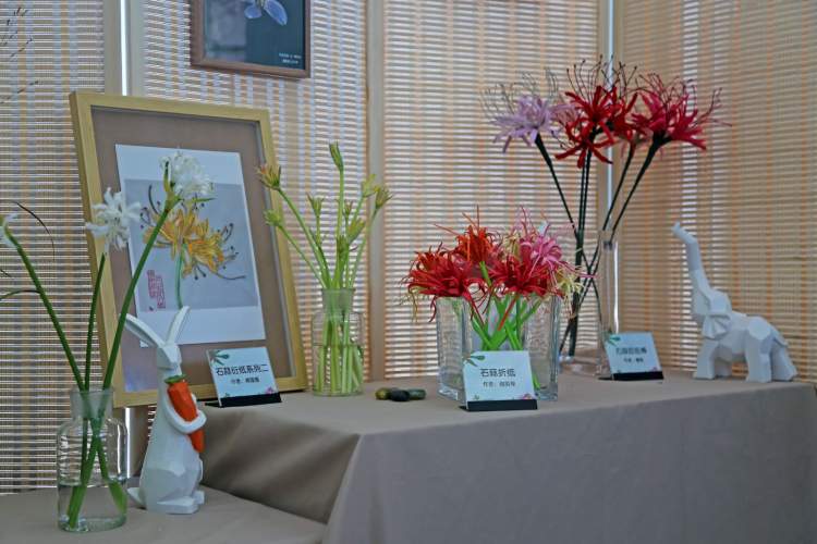 走进上海植物园北区的4号楼,可以看到花艺展示区、品种展示区、手工展示区等多个展区,通过真花、标本、绘画、折纸等不同形式来展示石蒜属植物的特色。