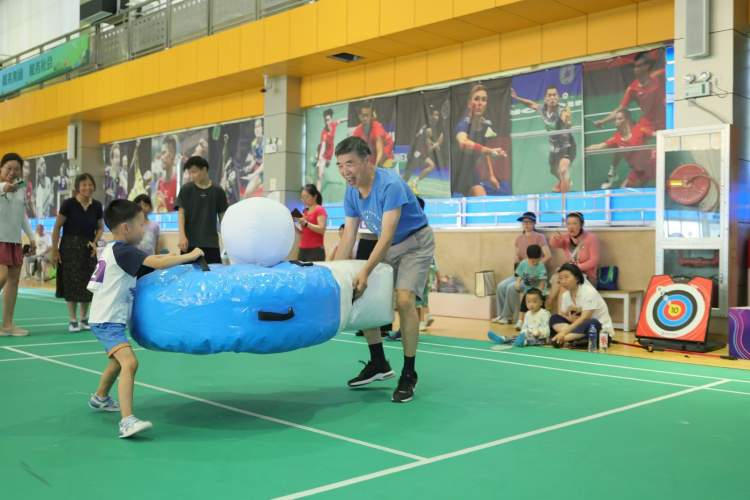 20组社区亲子家庭报名参加了“亲子迷你奥运会”项目。比赛中,从“圣火传递”的速度比拼,到“趣味射箭”的精准考验,再到“迎篮而上”的激情投掷,每一项活动都巧妙融合了奥运精神与亲子互动,既保留了体育竞技的魅力,又不失家庭间的温馨合作。“携手乒乒乓乓”和“有球必进”项目则展示了家庭成员之间的默契,活动现场掌声、笑声交织、气氛热烈。