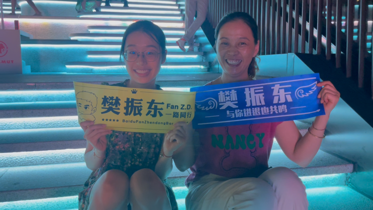 还有一对母女手持“樊振东”应援横幅为中国队加油,“你可以永远相信樊振东,永远相信中国队。”