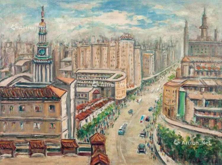 林达川 《上海街景》 1950年 布面油彩
