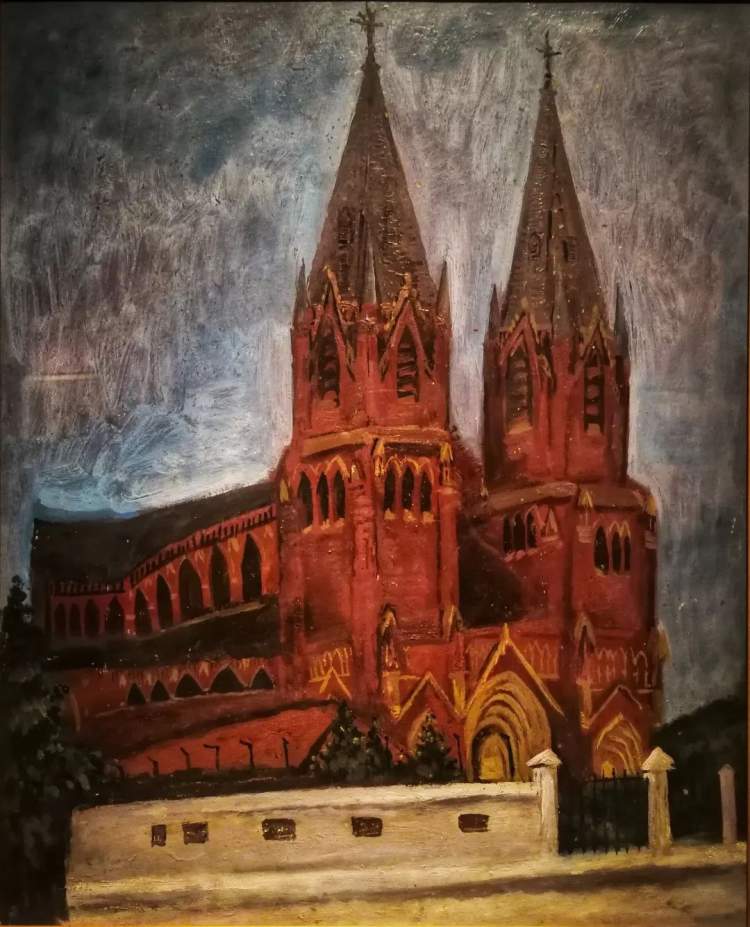 余有涵 《徐家汇教堂》 1982年 纸本油彩
