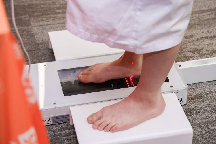 为了让孩子了解自己脚底的小“拱桥”是否健康,医生们为他们进行了足弓检测,筛查扁平足、高弓足等问题。通过仔细观察青少年正常站立时的腿部形态,再结合触摸足部,对足的外部情况形成初步评估;随后,借助足底压力分析仪,数字化采集孩子们的足压、足形,通过分析足底压力情况对足部进行精准评估。