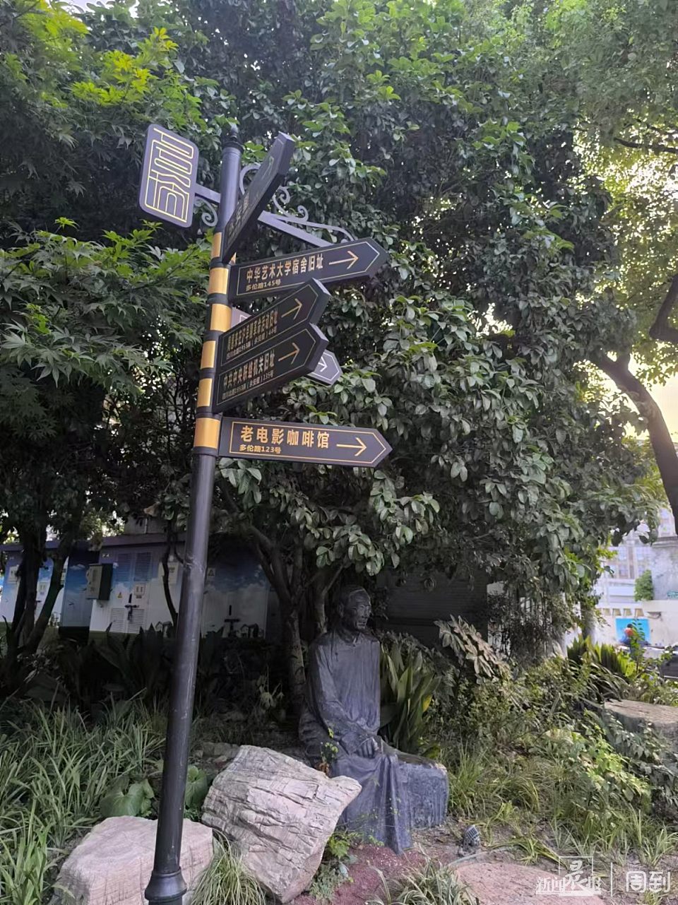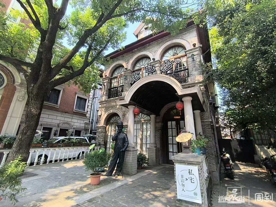 指示牌上,一个指向“老电影咖啡馆”的箭头,让他来了兴致。“有人请我去那里看过片子,环境挺优雅的。”他抬脚往那个方向走,一幢砖灰色老建筑就在眼前,门头上是“老电影”三个字,门口立着卓别林像。就快走到门口了,却见有人出来,指指一块“私人住宅”的铭牌,告诉他“谢绝参观”。