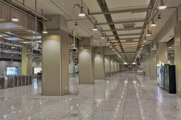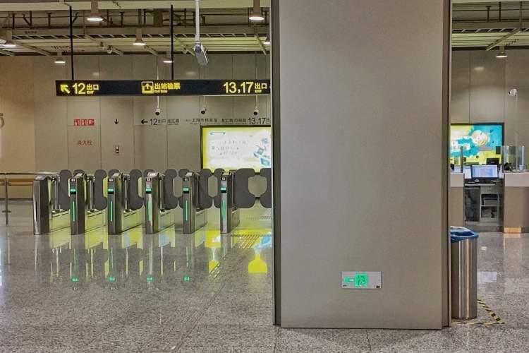 从通道进入18号线龙阳路站站厅,一眼望去也无法找到垃圾桶的位置。