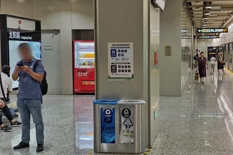 ▲市民周先生反映,上海地铁站的垃圾桶太难找