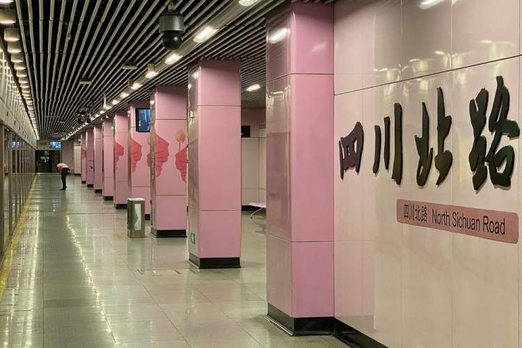 ▲轨交10号线四川北路站站台的垃圾桶相对比较醒目