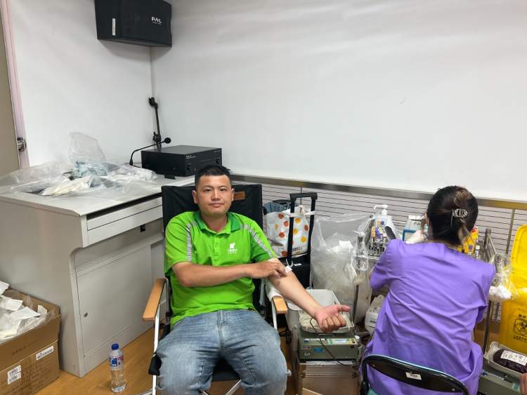在刚刚过去的长征镇无偿献血集中采集现场,排队献血的配送骑手成为夏日里的一道别样风景。
