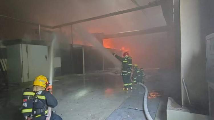 “这家企业主要生产塑料薄膜,起火的是一个车间的生产线,现场已经全面燃烧,浓烟滚滚、烈焰熊熊。”作为主管队站,张堰消防救援站站长助理张广栋根据统一指挥,带队进入车间,内攻灭火。