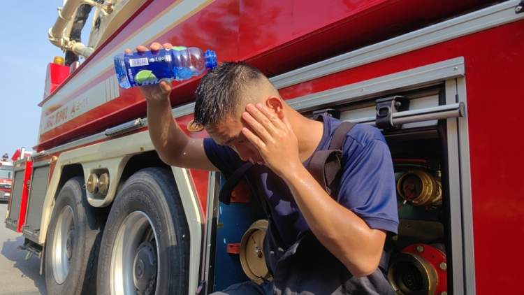 “我们轮换出来后,补充完水分和电解质,可以使用冰袋对身体进行物理降温。”赵亮说,支队战勤保障部门还给大家准备了很多块长约50厘米、高和宽约30厘米的大冰块在现场降温。