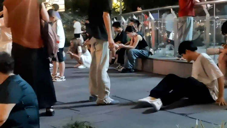 在金茂大厦附近,打卡者们对“出片”的执念,又上了一个台阶。在这里,为了拍出一张好看的照片,他们不仅愿意冒着自己或手机被踩的风险,或坐或趴或躺在人流密集的上街沿上,还愿意付出金钱。