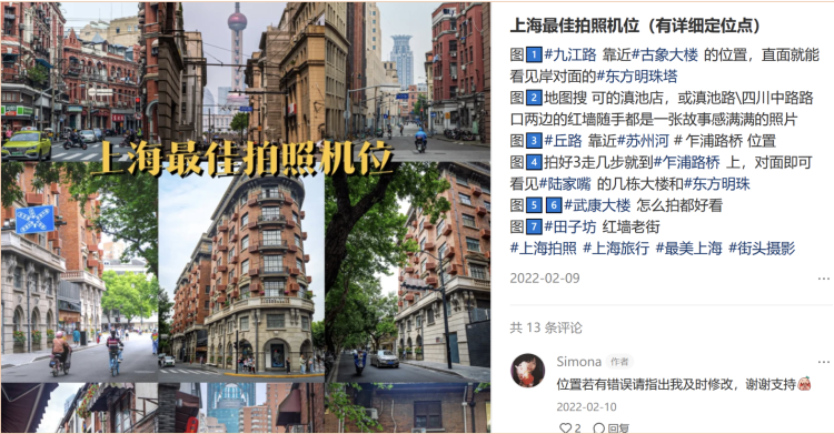 “上海真的好美!”“每一张都是人生照片!”有人在这些“机位”相关帖子的评论区中发出了这样的感慨。也有人不断在评论区询问,咨询具体的位置在哪,是否能够在一天之内走完,甚至还有人看过这些打卡照片后表示:“我上海白去了。”