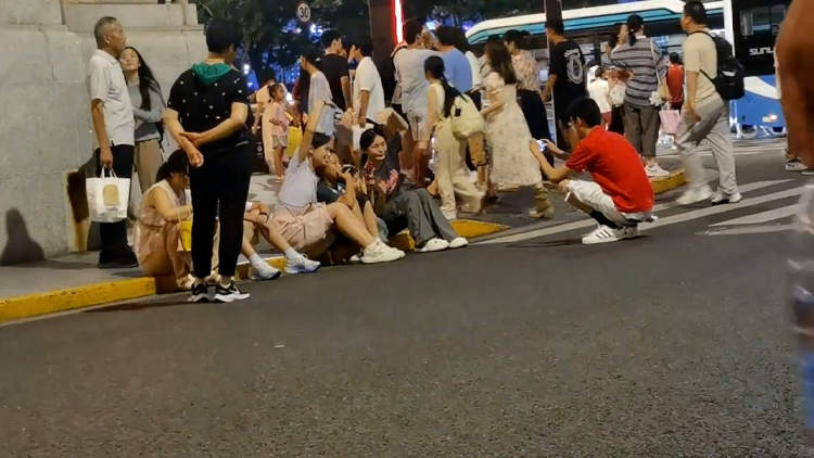 ▲很多游客累了就坐在九江路路边