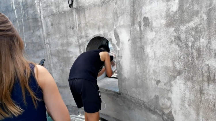 姑娘的话并非无的放矢,沙美大楼的墙壁约40厘米厚,想要达到社交平台上拍摄效果,需要拍摄者扎马步,上半身与地面保持平行,然后将胳膊和手机尽量探出去,接近墙壁外的外开小窗才能达成。