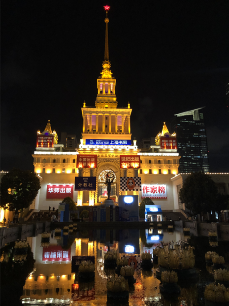 本届上海书展主会场——上海展览中心(夜景)