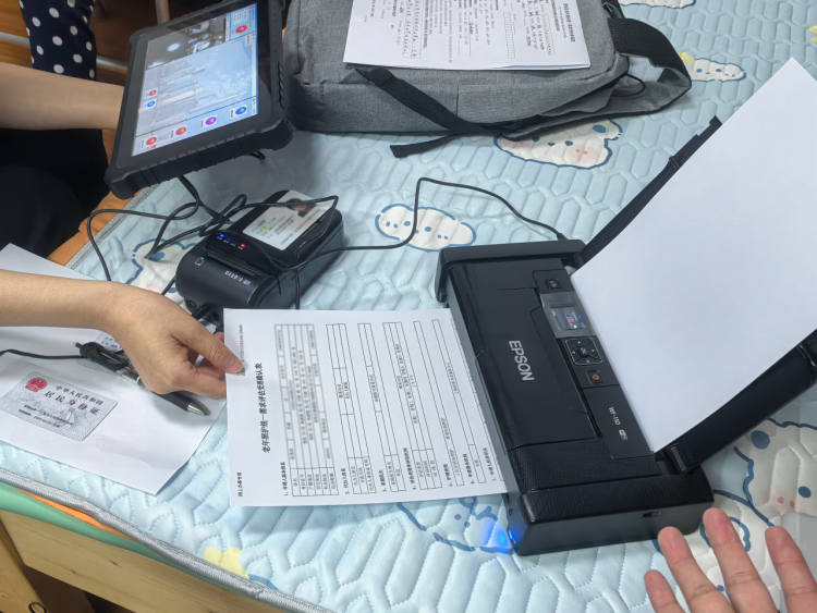 “志愿帮办服务队”立刻响应,带上全套设备“出诊”张奶奶家,利用“移动虚拟窗口”设备,进行远程视频及业务受理,不到5分钟的受理流程,和在中心窗口的操作一模一样,这让张奶奶心中十分踏实,张奶奶用她颤抖的双手紧紧握住工作人员的手表示感谢。