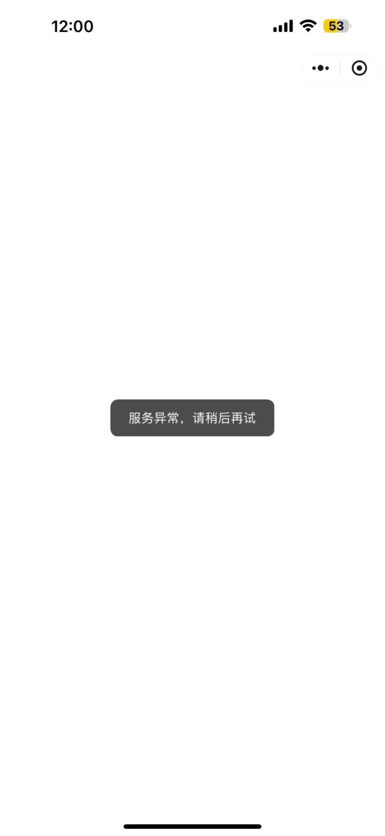 还没到12点,11点59分,记者进入官方小程序,小程序已经是几乎空白的状态,显示“正在加载”中,随后的一分钟里,一直处于“服务异常,请稍后再试”的状态。