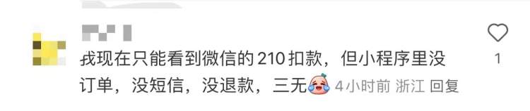 还有的人看到不到订单信息,只能看到扣款信息,到下午3点多,依然看不到订单。