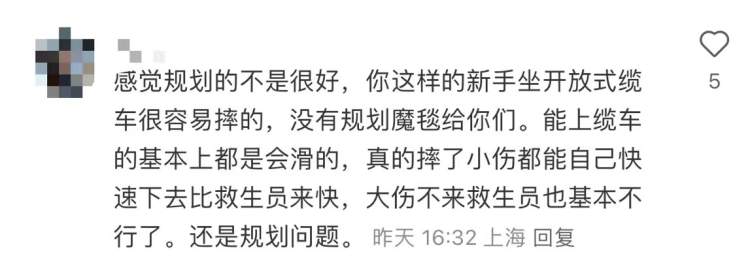 还有人认为,目前规划不是很好,没有为纯新手提供练习区,没有规划魔毯;动线不合理,“穿那么多装备,还要穿过大厅走来走去,现在人少还行,如果开业不限流,真的会乱到爆炸”。