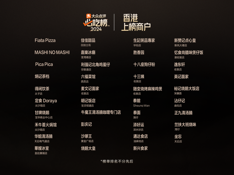 在今年“必吃榜”中,作为“环球美食天堂”的香港有39家上榜餐厅,为境外上榜餐厅数最多城市。其中28家为新上榜,小吃店占比接近20%;覆盖更多商区,天后、北角、西贡等地首次有商户上榜;包含12个品类,新增亚洲菜、西班牙菜等菜系,榜单成为更全面展现香港美食文化的“城市美食名片”。