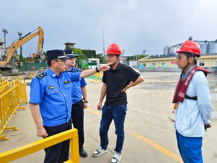 城管执法人员对渣土码头开展执法检查