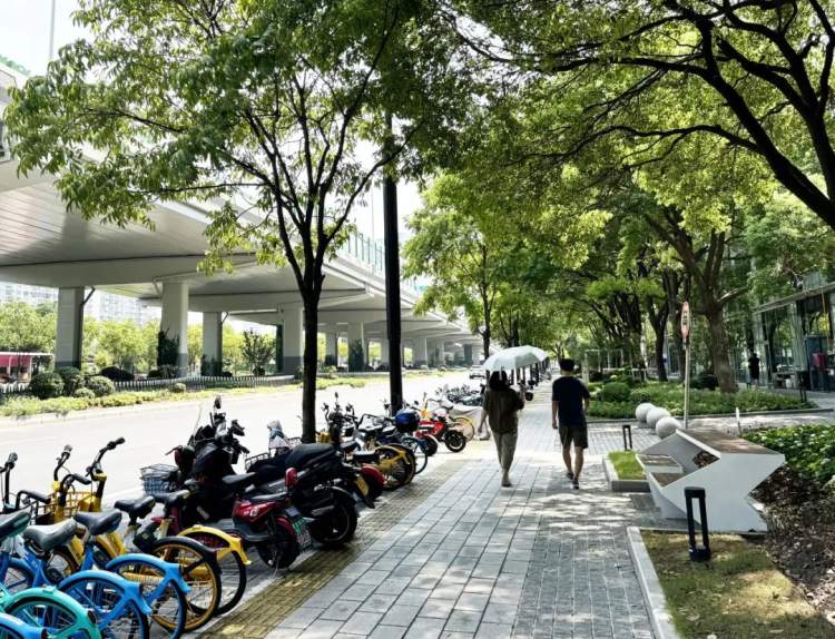 市民张女士表示:“经常从这边走过,现在看起来很有公园城市的样子了。我知道上海在打造城市公园、公园城市,这就是一种具象化的表达吧。很喜欢,希望这边的绿化可以长青,保持这样活泼的状态。”