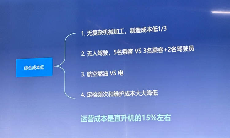 今年8月18日,国内首条跨省定点低空载客运输航线——连接上海浦东国际机场和江苏昆山城市航站楼的直升机载客航线正式开通。但此次“打飞的”并非eVTOL,而是传统直升机,飞行28分钟,单程执飞价格设为1600元/位或1800元/位。未来用eVTOL打空中出租车如果能实现,费用有望大幅缩减。