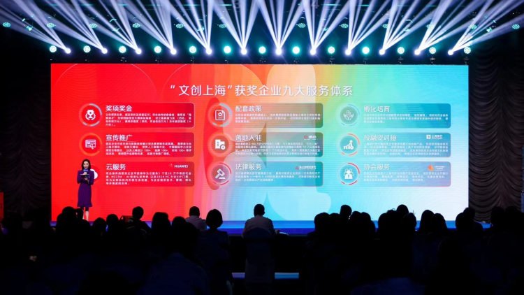 颁奖典礼上,大赛组委会发布了全新的获奖企业九大服务体系:除给予基础的奖项奖金外,在配套政策方面,将推荐符合条件的企业参加市级文创扶持资金等申报;在孵化培育方面,为企业定制创业辅导计划,助力其后续发展;在宣传推广方面,推荐企业参与新媒体传播计划与赛事相关成果展;在落地入驻方面,德必集团提出400万办公空间助力方案,企业将享有租金补贴;在投融资方面,上海银行为获奖企业提供专属文创金融产品;在云服务方面,华为云将为符合条件的获奖企业提供云服务及技术、营销、增长等多维度的支持;在法律服务方面,协力律所对符合条件的获奖企业提供免费的法律咨询与知识产权体检服务;在协会服务方面,获奖企业将获得市文促会一对一精准的协会综合服务。