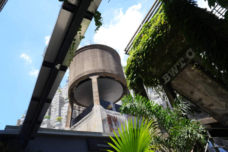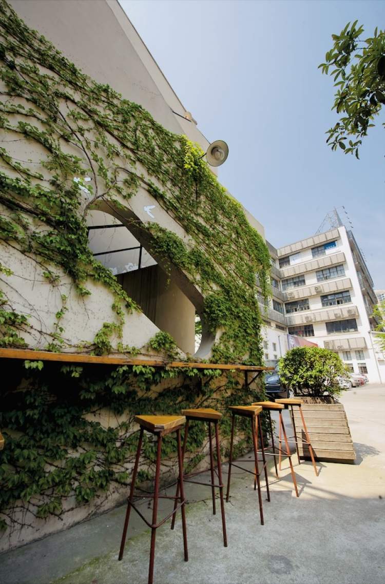 说到M50里的建筑亮点,不得不提的就是这里的大烟囱。上海当代艺术博物馆的“温度计”烟囱是黄浦江沿岸的一大标志,也是市区内最高烟囱之一。与之不同的是,M50的烟囱是由全砖砌起来的,也是苏州河沿岸的一大标志。