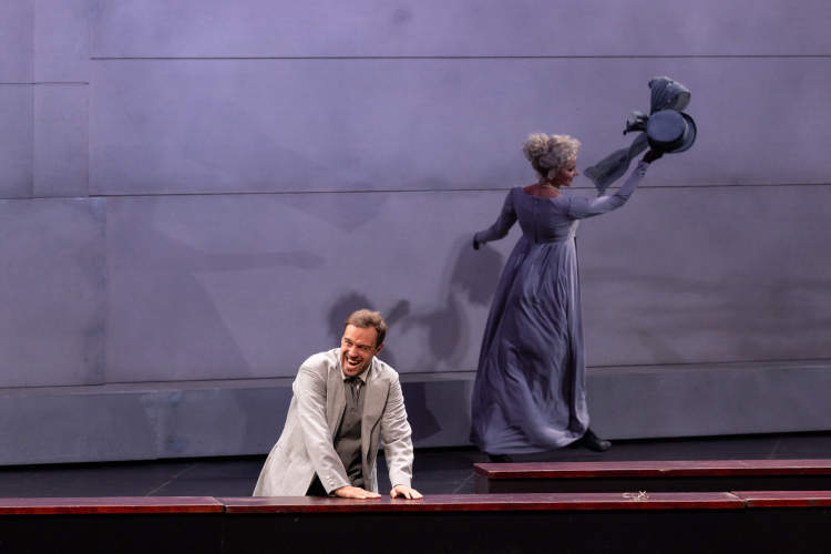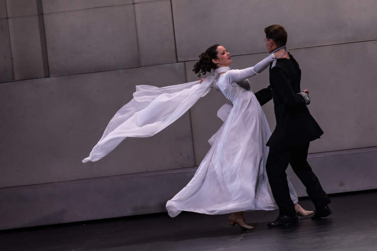 与此同时,巧妙的舞台设计配合着托尔斯泰原著中的象征意义,也将观众带入了一个充满张力与冲突的世界。空旷的舞台上,没有用以表现19世纪俄罗斯贵族奢华生活的道具,而是由一面巨大的墙体贯穿舞台。这是由著名舞美设计师阿多马斯·雅佐夫斯基斯设计的巧思,在舞台上扮演着重要角色。它能够移动、旋转,当表现恐惧时,舞美会缩小;当表现快乐时,舞美则会放大,象征着历史的沉重与命运的无常,为整场演出增添了哲学的意蕴。