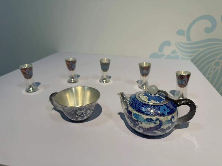 “中国老的珐琅器大多是以铜作为原料的,通常只能作为摆件,我们把铜丝、铜胎换成了银丝、银胎,将宫廷陈设珐琅器民间艺术化、实用化。”张航说。
