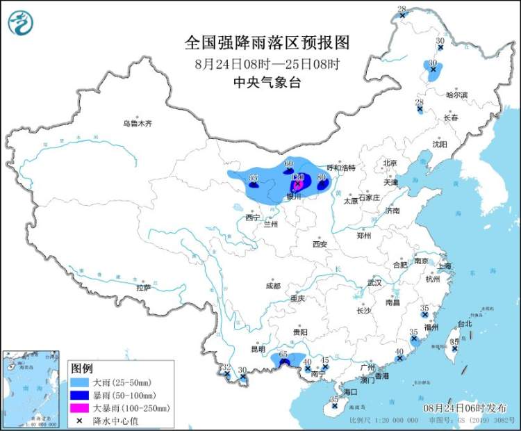 中央气象台8月24日06时发布暴雨蓝色预警: