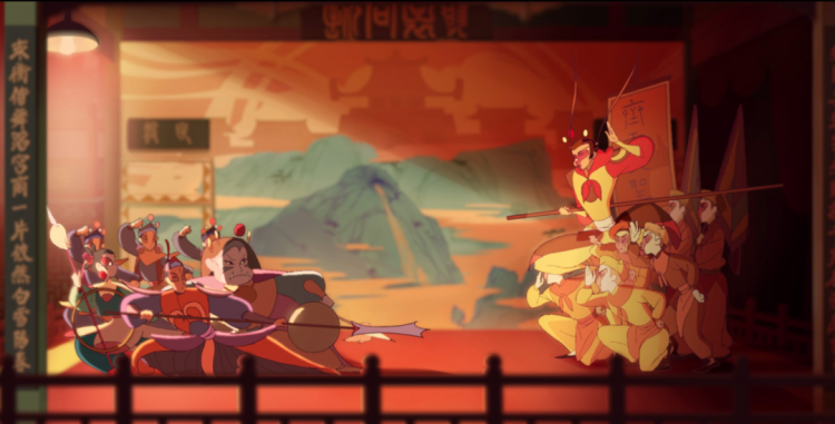 在“超时空对话”展览当中,记者看到了动画短片《我的<大闹天宫>》的相关介绍。这部动画短片导演是林亚萱,是2021年HiShorts!动画单元入围作品,讲述的是京剧兴盛繁荣的年代,戏院座无虚席,京剧《大闹天宫》火热开场。身怀绝技的演员们在方寸舞台间闪展腾挪……戏到高潮,戛然而止。原来,这是一位戏校学徒的联翩浮想。成为新一代齐天大圣的梦想的梦想,在他的心中悄然升腾。