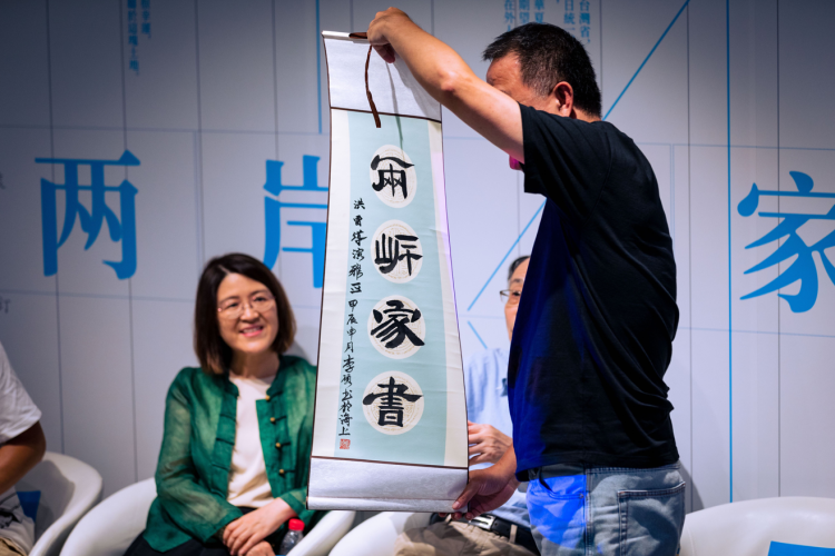 点映会现场,嘉宾现场诵读纪录片中的家书片段,“三十年分离,三十年相思,泪水都流干了,你还记得我吧……”字句间更让片中主人公们的思念,以字为浪花,如潮水奔涌汇聚,在嘉宾们的诵读与观众们的聆听时,无数次复写、叠加,让那思念之海的轮廓逐渐清晰。现场亦有台湾观众赠书法字“两岸家书”给纪录片总导演洪雷,表达观看纪录片后难以言表的激动之情。
