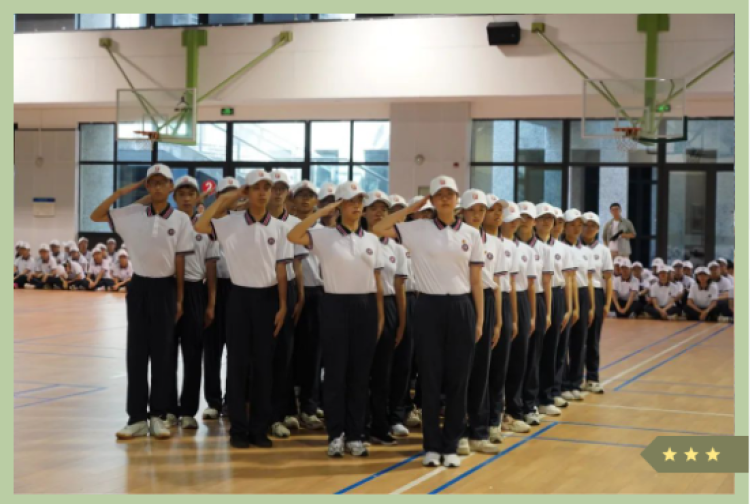 浦东复旦附中分校近日举行2027届军政训练成果汇报。同学们在教官的带领下进行了科目汇报展示。“稍息、立正”“敬礼、礼毕”,每一个动作整齐划一,每一道眼神斗志昂扬。五天的军政训练洗去了同学们身上的稚气,如今的他们顽强而坚定。
