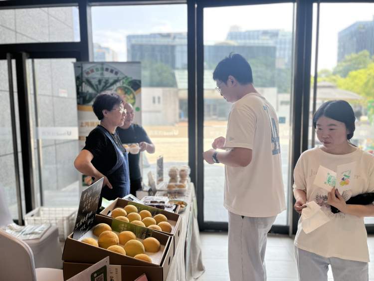 8月22日和23日,上海农展馆携手新闻晨报·周到开展“共享丰收,优品鲜达”市集,举办上海地产优质农产品进园区活动。来自浦东新区的上海桃咏桃业专业合作社和上海闵中生态农业发展有限公司、嘉定区的马陆葡萄公园、崇明区的今喜农四家合作社带来上海当季优质水果和生态农产品。锦绣黄桃、无花果、红心火龙果、马陆葡萄、崇明米酒、翠冠梨、稻田鸭……现场琳琅满目,应有尽有。