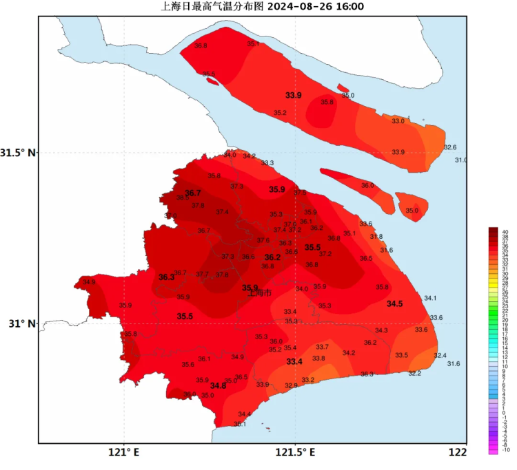 出伏后的上海还是这么热,今天申城今天晴到多云,中心城区徐家汇站最高36.2℃,成为2024年第44个高温日。