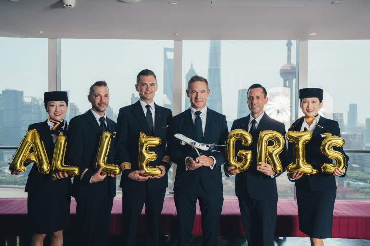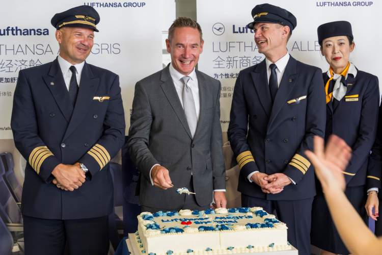 上飞机,CEO播报“机上广播”;下飞机,CEO开切“首飞蛋糕”……作为汉莎航空新座舱产品Allegris在亚洲的首飞目的地,8月21日从慕尼黑飞往上海的LH726航班迎来了一位特别的乘客——汉莎航空CEO延斯·里特。