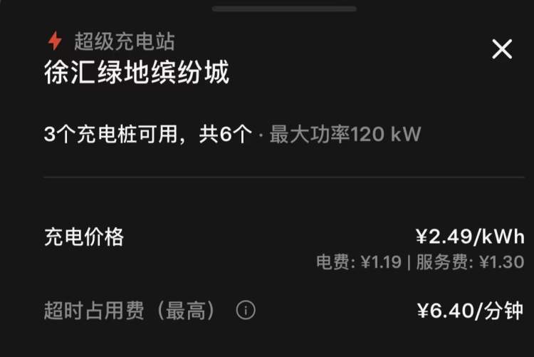 ▲徐汇绿地缤纷城超级充电站的充电收费标准