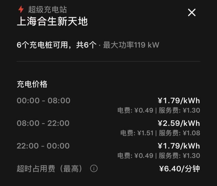 ▲合生新天地超级充电站的充电收费标准