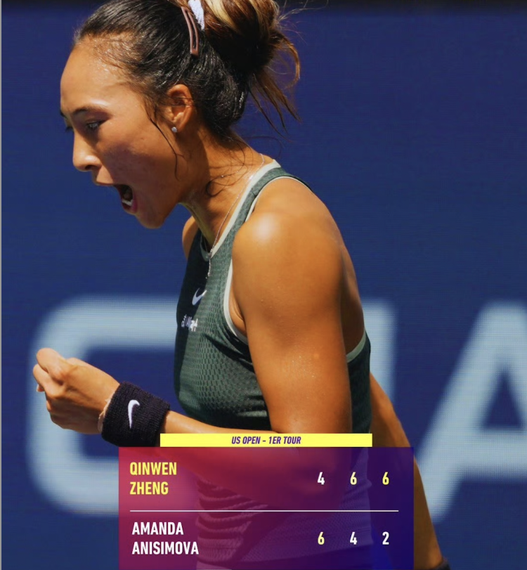 北京时间今天凌晨,郑钦文在美网女单首轮比赛中,在4比6先丢一盘的情况下,以6比4、6比2的比分连扳两盘,再度上演逆转,以总比分2比1击败近期状态不错的阿尼西莫娃,晋级美网第二轮。