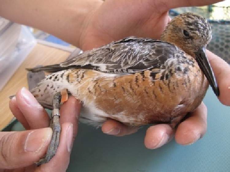 崇明东滩保护区曾经环志的一只红腹滨鹬。