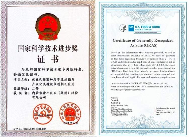 在研发创新领域,蒙牛作为主要完成单位提报的“优良乳酸菌种质资源挖掘与产业化关键技术创新及应用”获得国家科学技术进步奖二等奖,成为行业唯一两次获此殊荣的企业。蒙牛控股公司虹摹生物成功完成近亿元Pre-A轮融资,自主研发的母乳低聚糖(HMO)获得美国食品药品监督管理局(FDA)的GRAS(Generally Recognized As Safe,公认安全)认证,持续巩固中国HMO领跑者地位。