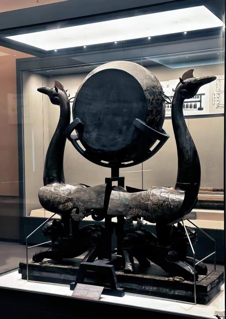 荆州博物馆:虎座鸟架鼓+西汉鎏金豹形镇