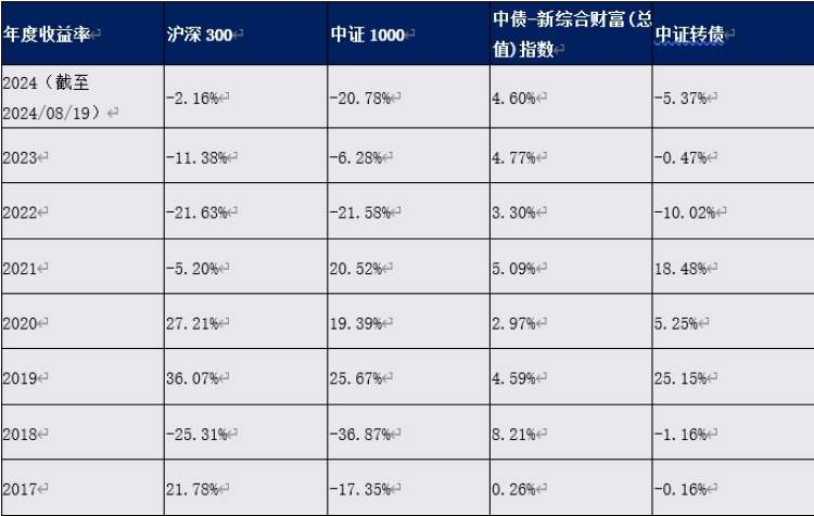 表1:2017年以来中证转债与各指数年度收益率对比