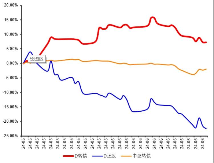 还可以是条款博弈收益,如D转债在转股价格下修阶段,独立于正股和转债指数而上涨: