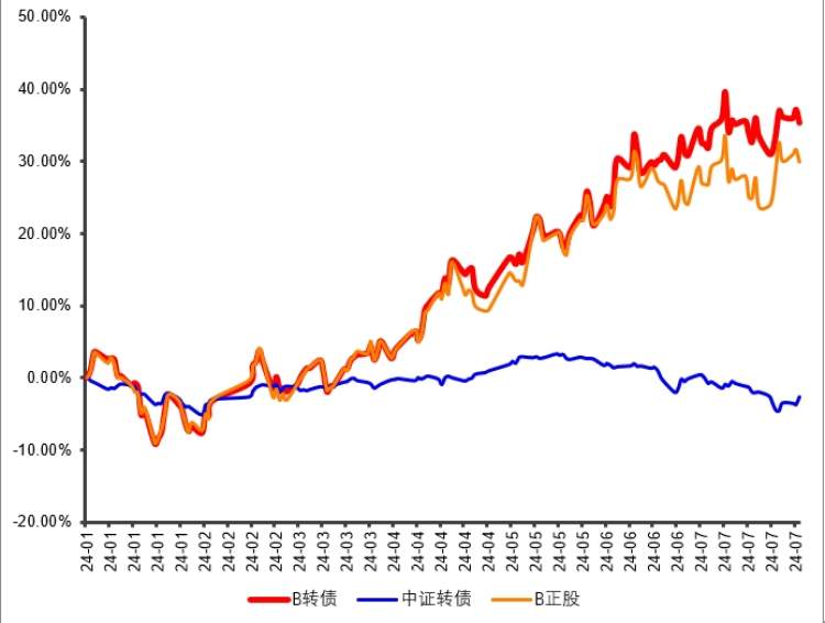 可以是正股收益,如B转债随正股持续上涨: