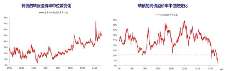 图7:转股溢价率与纯债溢价率中位数的历史对比