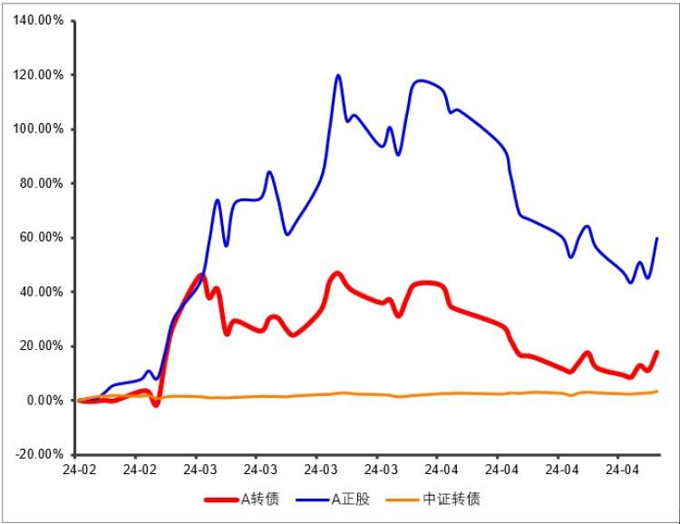 图3:A转债与正股、中证转债走势对比