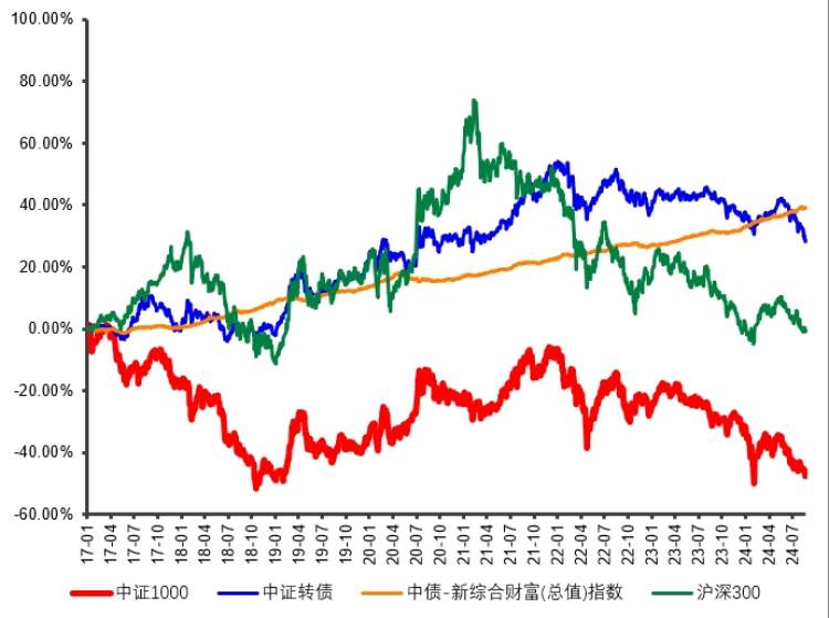 图2:中证转债与沪深300、中证1000、中债-新综合财富(总值)指数走势对比